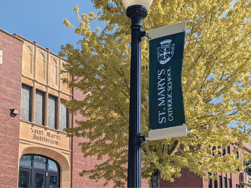 A: Absolutely. Our outdoor banners, flags, and decorations are designed to withstand wind, weather, and seasonal use on school campuses.