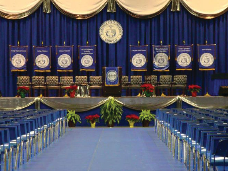 For commencements, academic ceremonies, and formal campus events to add visual distinction and school pride.